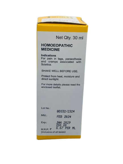 A homeopathic formulation for sciatica that helps relieve radiating leg pain, tingling, numbness, and stiffness.