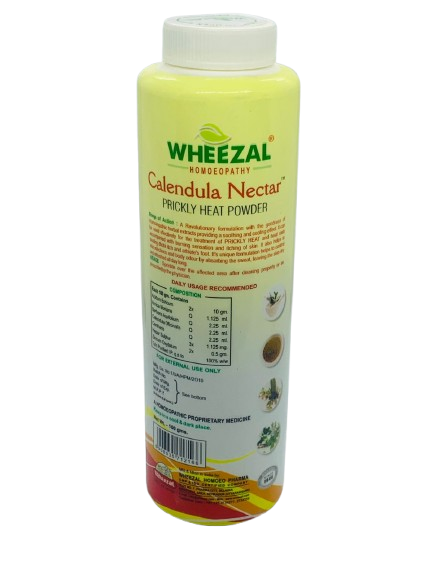 An herbal prickly heat powder enriched with calendula for relief from prickly heat and rashes.