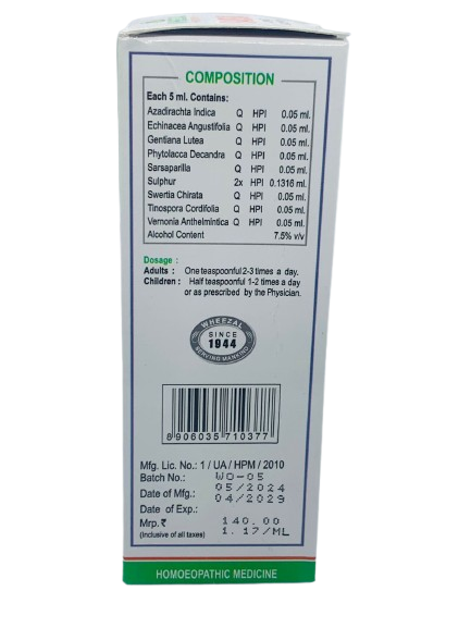 A herbal homeopathic tonic to help purify blood and improve skin health by flushing out toxins.