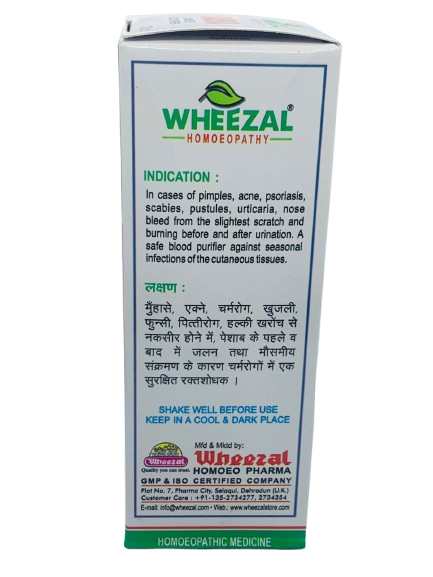 Helps in acne, pimples, boils, and other skin eruptions; purifies blood; supports clear and healthy skin.
