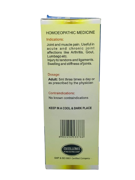 Homeopathic actives as per brand label (e.g., Rhus tox, Bryonia, etc.)